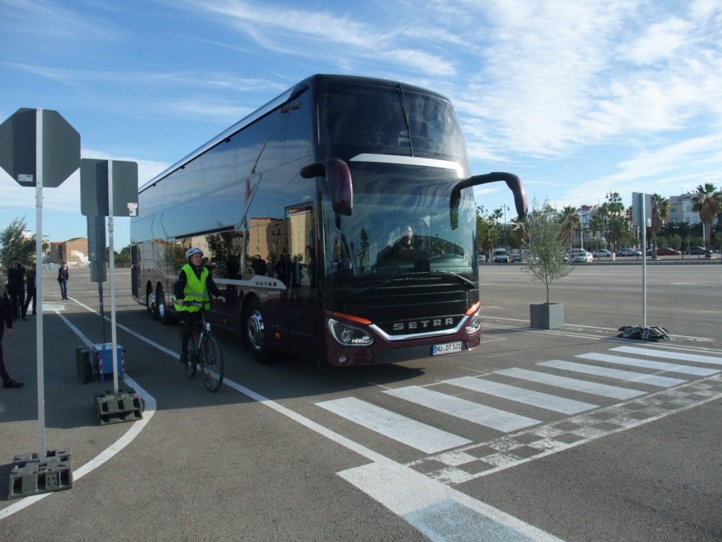 par l’autocar qui veut maintenant tourner