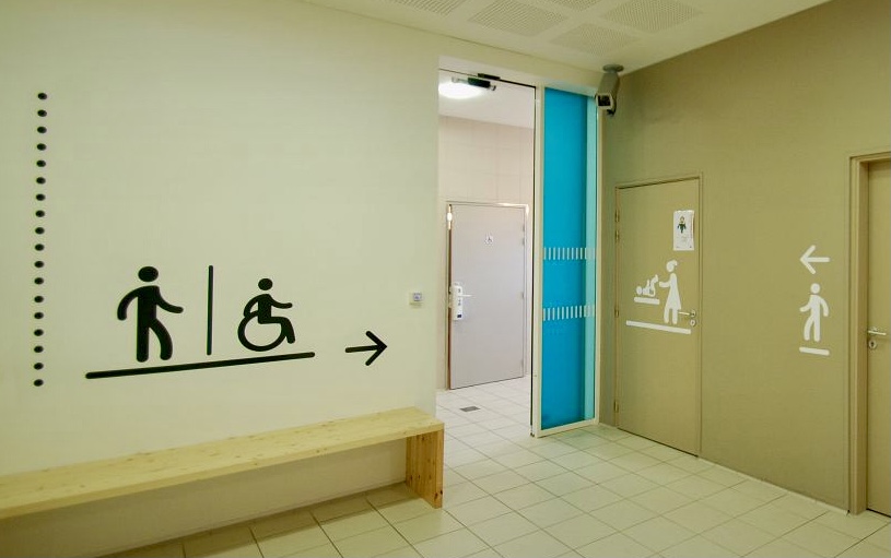 I. L.-S. Un exemple : il y a six ou sept ans, nous avons redessiné le fameux pictogramme nursery qui était totalement genré (une femme changeant son bébé) et, qui plus est, dont l’espace était installé dans les toilettes des femmes. C’était là depuis longtemps, mais on ne le voyait plus. Avec un groupe de travail, nous avons redessiné le bébé en grand et seul. Nous avons aussi installé la nursery entre les toilettes des hommes et des femmes. C’est ainsi, les mentalités évoluent et ce qu’on acceptait avant, sans y faire attention, devient aujourd’hui inacceptable.